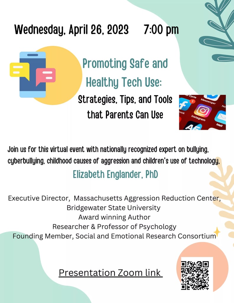 The virtual event is presented by nationally recognized expert on bullying, cyberbullying, childhood causes of aggression and children’s use of technology, Elizabeth Englander.