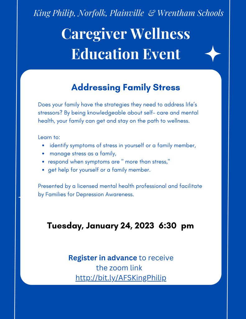 EVENT TONIGHT: Addressing Family Stress: Presentation for KP, Norfolk, Plainville & Wrentham Families