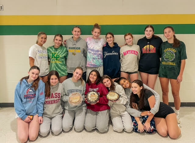 On Tuesday, Oct. 24, the KP Girls Volleyball Team sorted 69 Lyman Orchards apple crumb pies to be delivered to the Wrentham Food Pantry, Norfolk Food Pantry, Plainville Food Pantry and Gilly’s House.