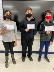 - From left: KP Math League eighth-grade students Rivya Shrivastava, Thomas Nerney, and Alex Ciuica. (Photo courtesy King Philip Regional Public Schools)