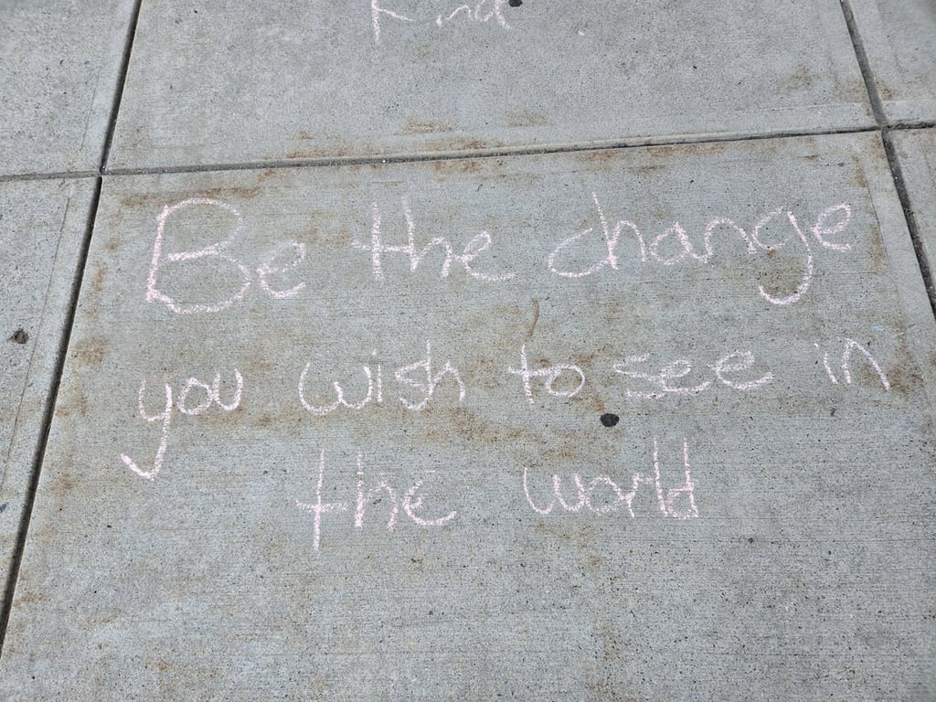 For Unity Day, the Student Council greeted peers with messages of hope written in orange chalk along the school’s walkways. (Photo Courtesy King Philip Regional School District)