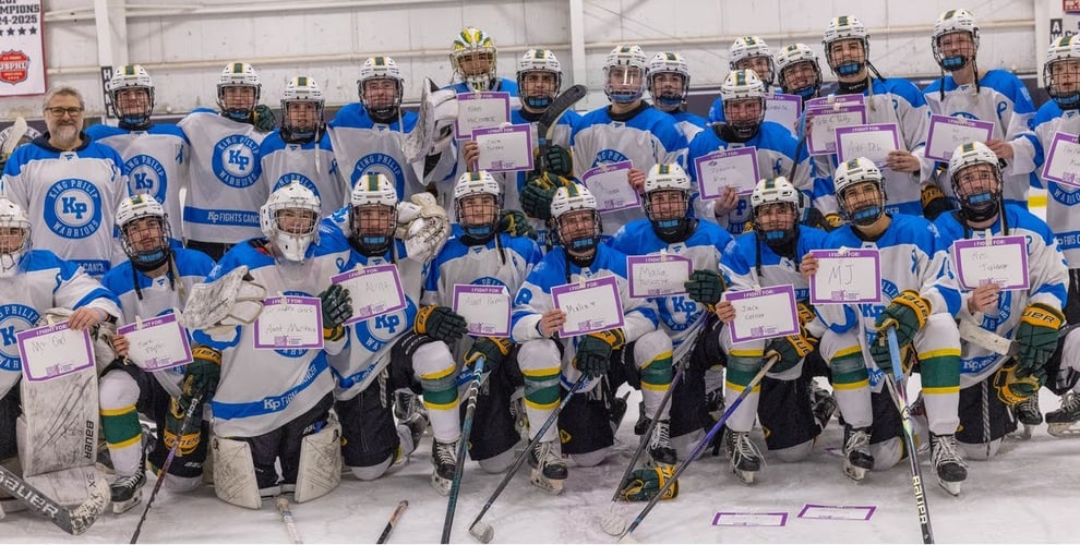 The team raised a total of $956 at the game and honored KPRHS parent Jason Morneau, who is currently fighting prostate cancer, with his own jersey. KPRHS players wore white and light blue jerseys to bring attention to the American Cancer Society, specifically recognizing prostate cancer.