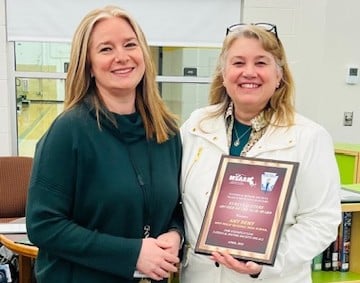 King Philip Regional High School Principal Nicole Bottomley, left, with National Honor Society Co-Advisor Amy Remy, who was selected as the Massachusetts School Administrators’ Association 2025 Massachusetts National Honor Society Advisor of the Year. (Photo Courtesy King Philip Regional School District)